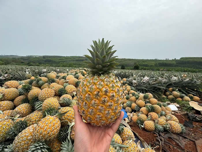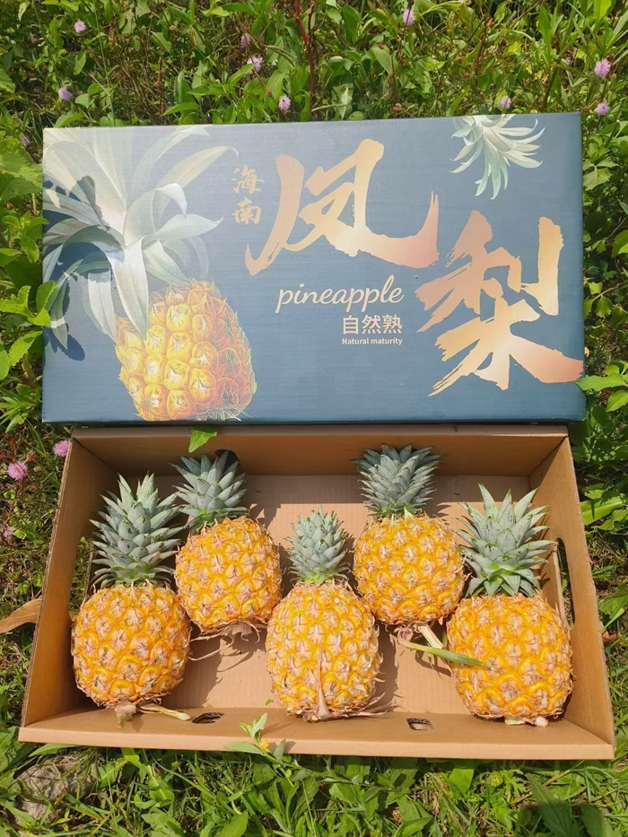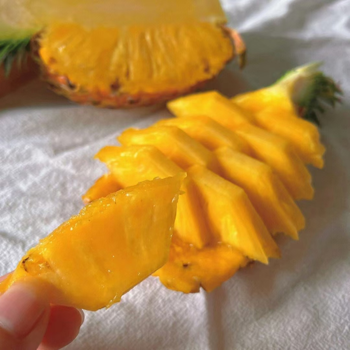 海南芒果凤梨,属台农23号凤梨,海南热带种植。果实饱满、果眼浅平;果肉金黄、纤维极少,风味融合芒果与凤梨,甜度18–22°,菠萝朊酶含量极少,免泡盐水,食用便捷、是一款高端的凤梨品种。我们拥有合作果园800多亩,每年2-5月稳定供货。
